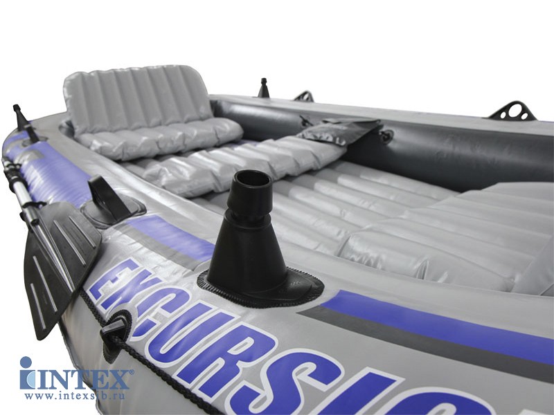 Четырехместная надувная лодка Intex Excursion 4 Set размером 315 х 165 x 43 см изготовлена из специального высокопрочного ПВХ, состоящего из двух слоев. Этот материал не боится воздействия агрессивной среды: бензина, машинного масла, соленой воды. Он устойчив к перепадам температур и воздействию солнечных лучей.