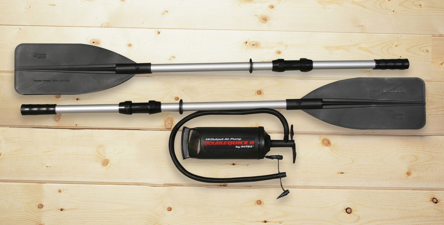 - В комплекте 2 подушки, алюминиевые весла, ручной насос.