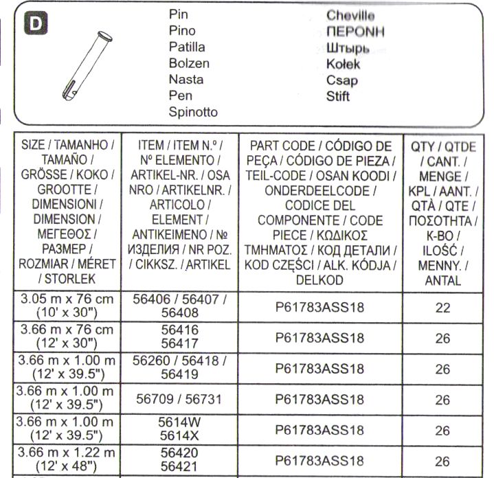 Комплект из 5 штук - Штифт для соединения (штырь) P61783ASS18 BestWay для круглого каркасного бассейна Steel Pro Max BestWay 366х122 BestWay с резиновыми уплотнителями.