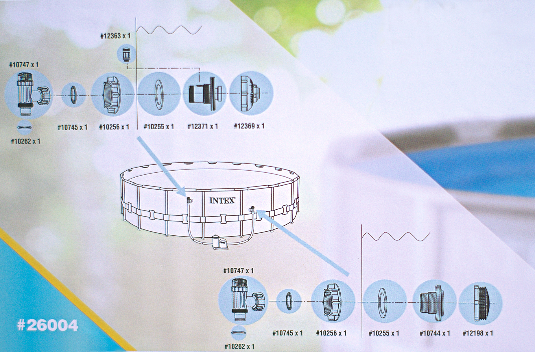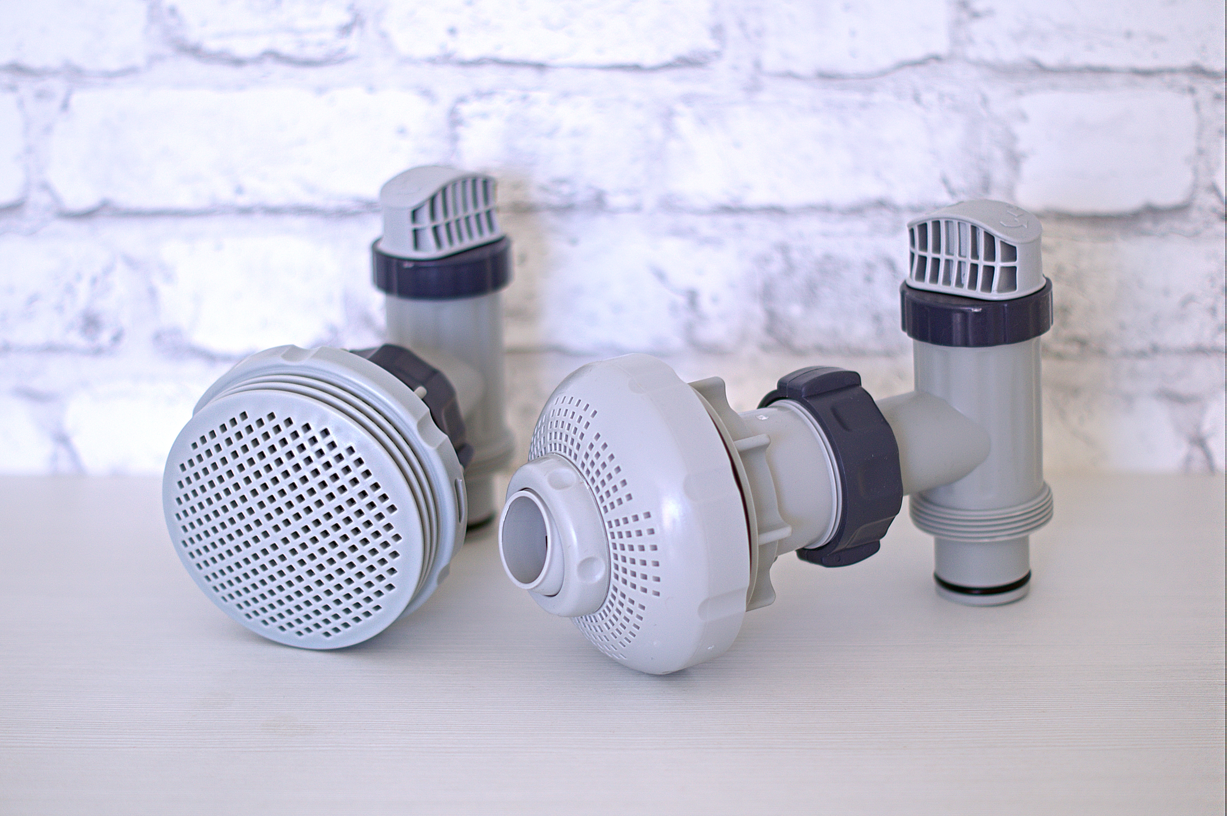 -Соединитель на вход в бассейн Intex 12371 c сеткой Intex 12369 и клапаном аэрации Intex 12363