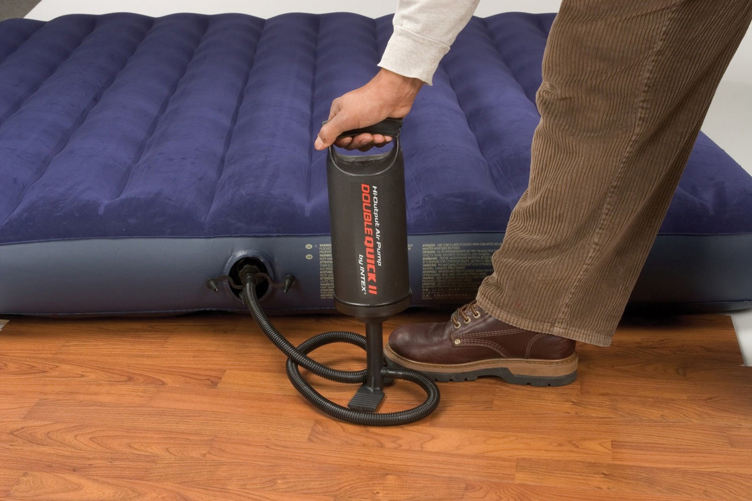 Этот насос надувает и при подъеме, и при опускании ручки. Насос независим от электричества, что позволяет взять его с собой в поход или на дачу. Подходит для всех надувных изделий Intex. Размер 36 см.
