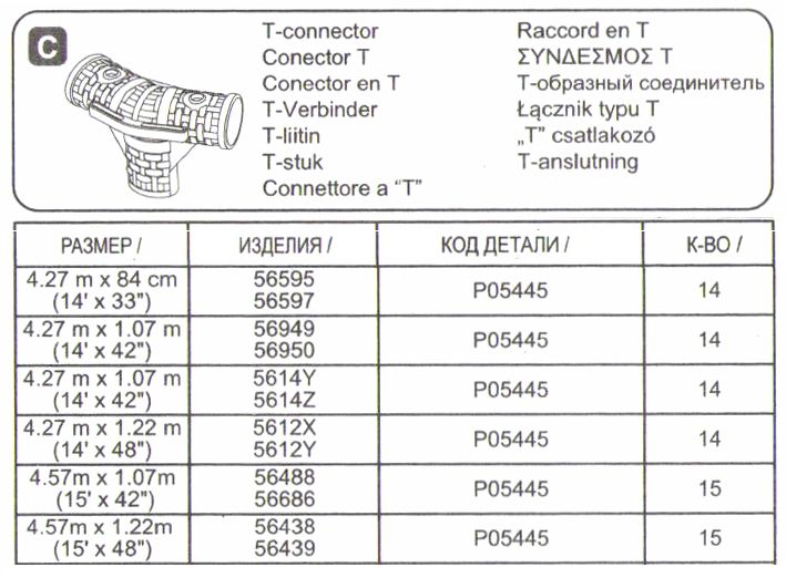 Т-образный соединитель - тройник P05445 BestWay с МАРКИРОВКОЙ "15" для круглого каркасного бассейна Steel Pro Max BestWay 457х122 BestWay, подходит для круглого каркасного бассейна BestWay диаметра 457 см. и 427см.