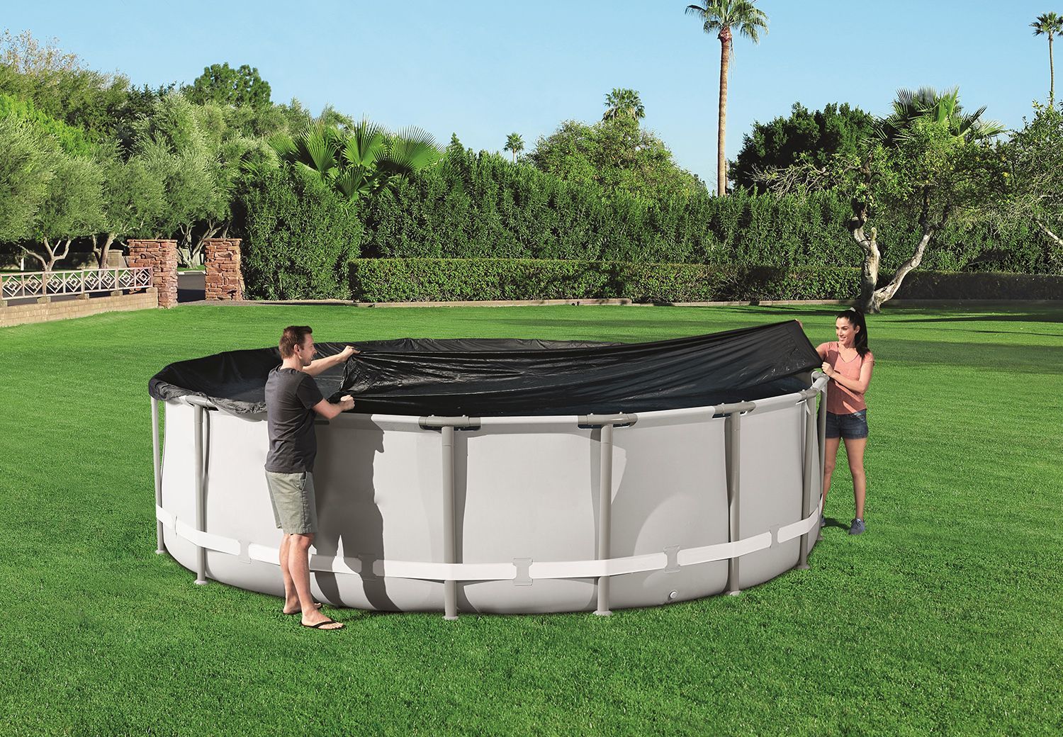 Защитный тент Bestway для каркасных бассейнов диаметром 457см. артикул производителя 58038.