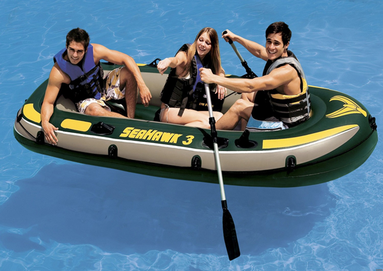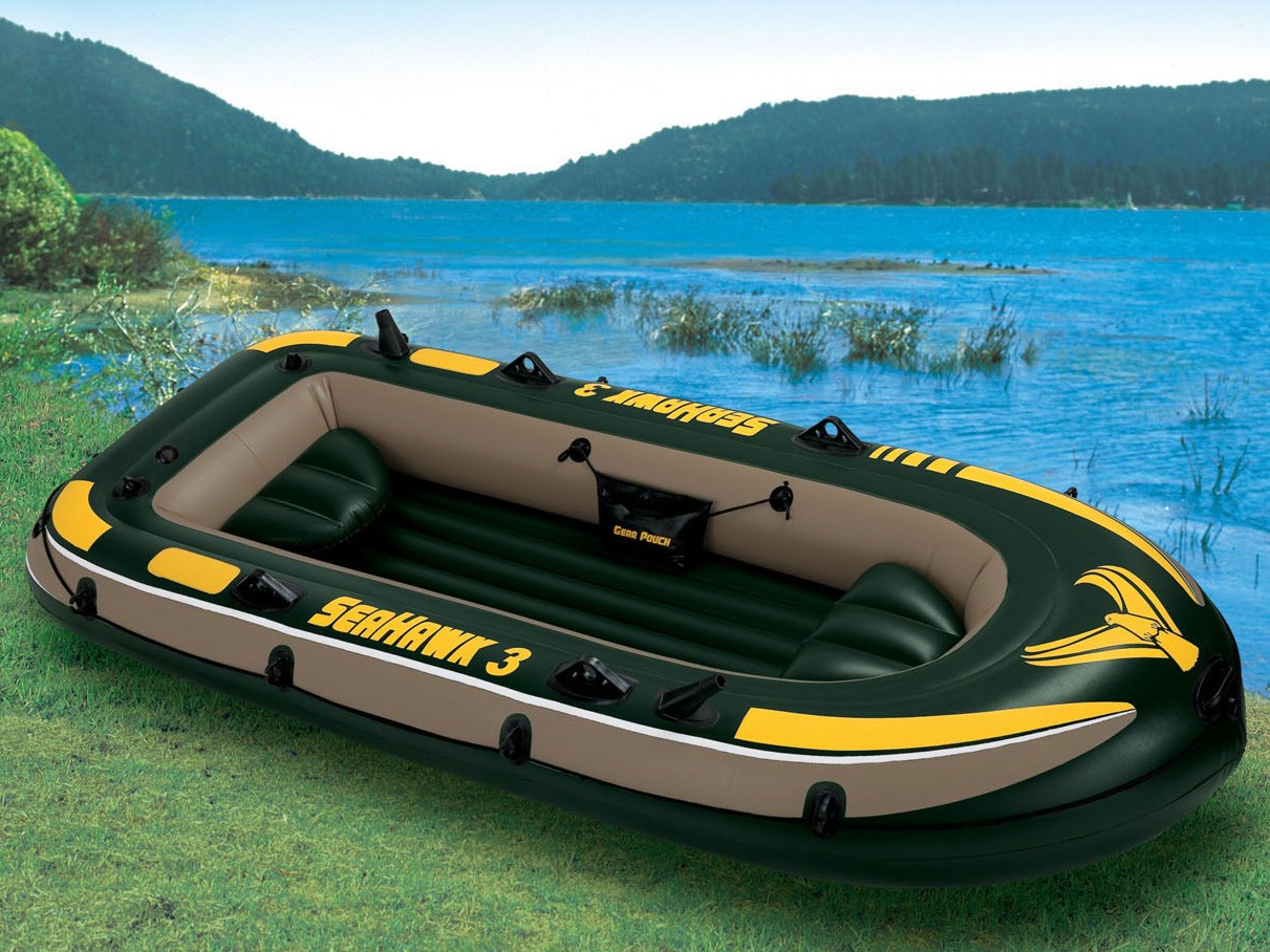 Трехместная надувная лодка Intex SeaHawk 3 размером 295 х 137 x 43 см изготовлена из специального высокопрочного ПВХ, состоящего из двух слоев. Материал устойчив к воздействию агрессивных сред (бензина, масел, соленой воды).